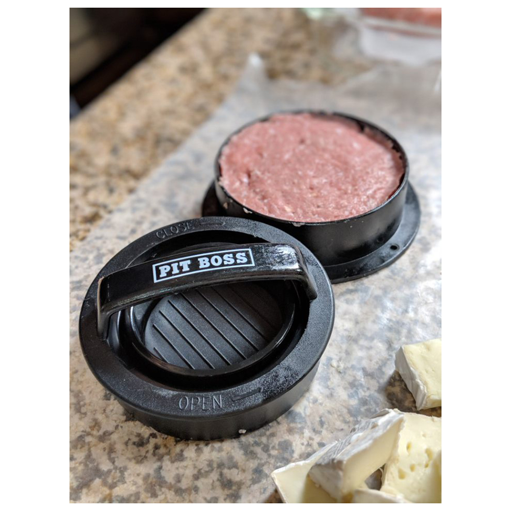 Φτιάξτε τέλεια καλοσχηματισμένα μπιφτέκια με την πρέσσα για μπιφτέκια Pit Boss 3-in-1 Burger Press. Ένα χρήσιμο και εύκολο στη χρήση εργαλείο που σας επιτρέπει να πλάθετε μπιφτέκια, ακόμα και μπιφτέκια με γέμιση, όλα στην ίδια συσκευή.